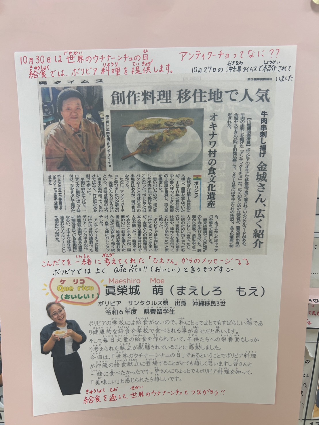 今年は多くの方々のご協力のもと、県内の多くの小中学校で、ブラジル・ペルー・スペイン・ハワイなど世界のウチナーンチュゆかりの国の料理が給食として提供されました🇯🇵🌎
