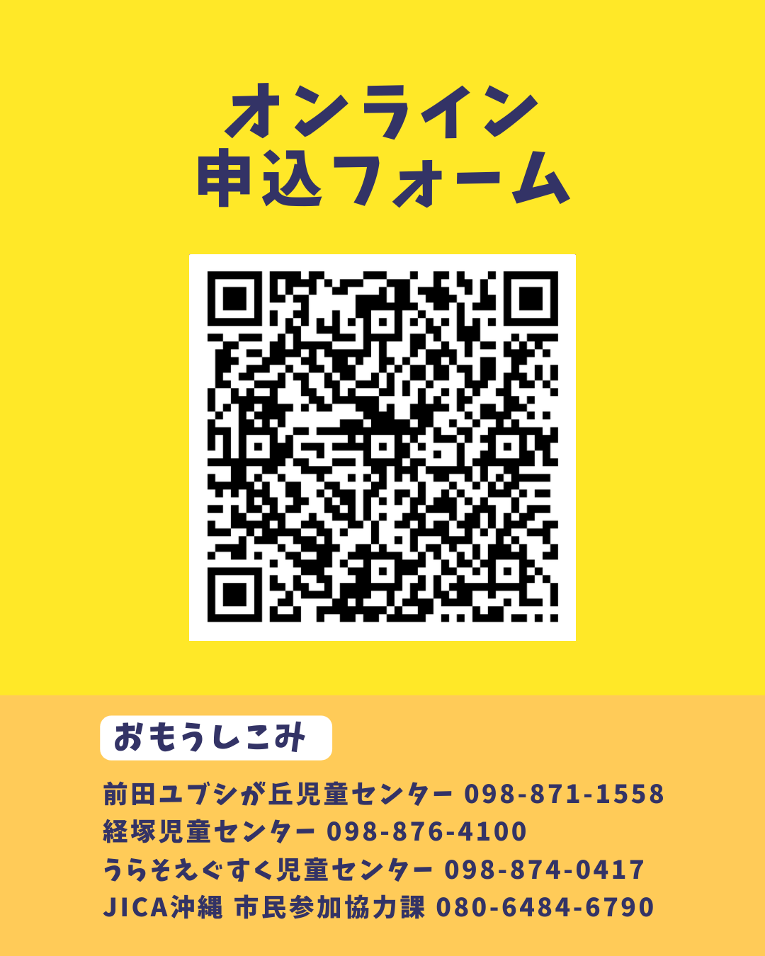 お申し込みはチラシのQRコードまたは各児童センターへ。