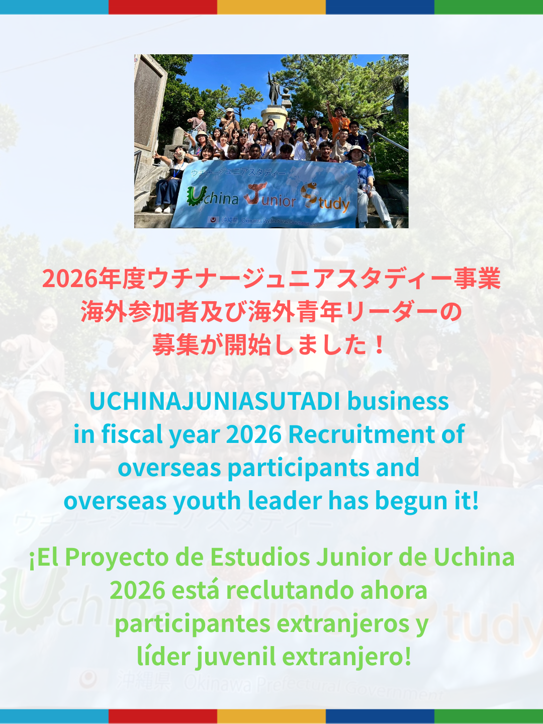 UCHINAJUNIASUTADI business in fiscal year 2026 Recruitment of overseas participants and overseas youth leader has begun it!