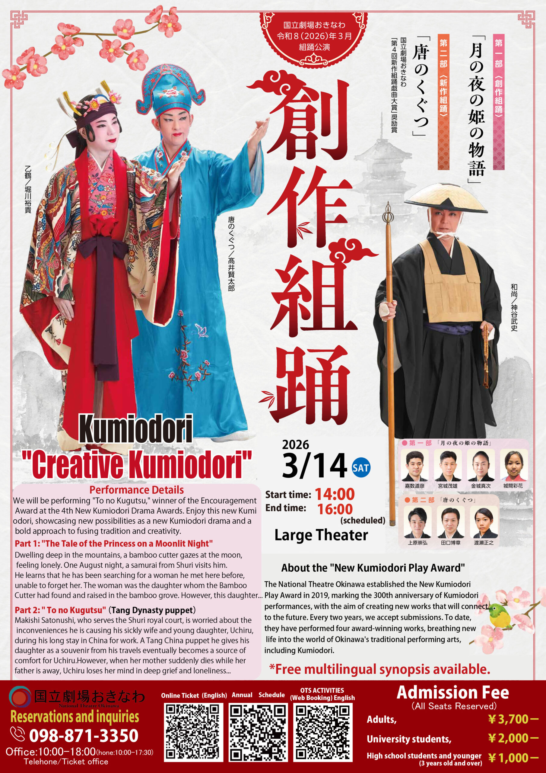 March14th Kumiodori Performance “Creative Kumiodori” 12:00 PM EVENT facebook0 Twitter An announcement from the National Theatre Okinawa. ▶▶▶See details Related Articles Kumiodori for biginners ~Discover KUMIODORI~ ”Shushin Kaneiri” Notification of a Performance Hajimete no Kumiodori ~Discover KUMIODORI~ “Shushin Kaneiri” from The National Theatre Okinawa Announcement from National Theatre Okinawa Back Return to List Related Articles